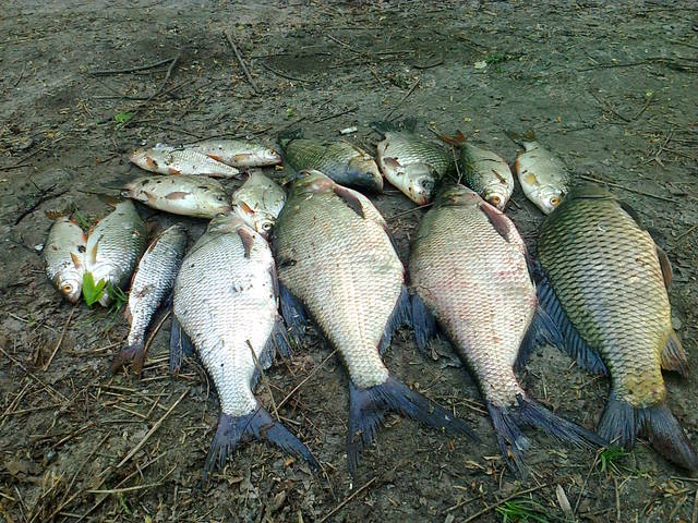 Был в Кружиловке с 31-го апреля на 1-е мая. Сначала поехали на Глинище, там рыбаков тьма просто, было пару мест свободных, и то не очень благоприятных, все говорили, что клев вообще плохой, там максимум может 3 густеры ловили, вода поднялась, вот - это из разговоров с рыбаками. Поехали после этого в Кружиловку (это было часа 3-4 вечера), пока добрались по этим ямам всем, время тоже прошло, ловить начали примерно в 18:00 (может пол 6, точно не скажу). Часик кормили точки, было у нас две дальних (фидера) и две ближних (донки). Часов в 7 начался прямо таки хороший клев, несколько густерок было поймано, и крупненький карась. Была очень мощная поклевка, видимо голавля, взяв фидер такие толчки давал, но в процессе вываживания ушел, не удалось к сожалению даже посмотреть, что там за зверь такой был, но может оно и к лучшему, не так обидно. Продолжался клев до 9 вечера, в этом время он резко пропал. В итоге с 9 до 12 сидели играли в нарды и после каждой партии делали перезаброс. Ничего не поменялось. Достали удочки и пошли спать. На следующее утро ловить начал в 4 часа утра, ожидался хороший клев, но этого не произошло. Следующий день был тухлым на поклевки, они были, но редко, и зачастую опарыша обсасывали, червя объедали. Часов в 8 утра попалась густерка. По итогу за день рыба ловилась где-то раз в 2-3 часа. Кормушки на ближней точке - 80 грамм, на дальней точке - 100 и 110 грамм). Наживка - опарыш, червь, мотыль (не бралось на него, стягивало просто), барабулька (на неё вообще полный ноль). Напарник на другом месте с часу дня и до пяти вечера натягал с десяток, сказал, позже, что на плавающее тесто, на опарыша хуже ловилось. Он почему переехать решил, потому что на этом месте ловилось только у меня, хотя удочки у нас стояли по очереди, вот и решил попробовать на другом. Комаров просто жесть как много, искусали капитально, это при том, что руки и лицо мазали кремом от комаров (москвитал), так они грызут через носки, через одежду, очень надоедливые. Змей тоже очень много, в основном дорога над донцом которая идет и вот они по краям уползают сразу как проходишь, ужи, гадюки видимо, вот. Улов не очень большой, но и не с нулем как большинство. Знакомые из Пархоменко говорили, что рыбаки у них оставались ночевать, три дня ходили ловить и за три дня вообще ничего не поймали. Отдохнули замечательно просто. Очень много ловилось ершей-носарей и поскольку он в Красной Книге, то мы их отпускали, с десяток точно отпустили, двоих пришлось оставить, не получилось вытащить крючок аккуратно, а он заглатывает по самые яйца.