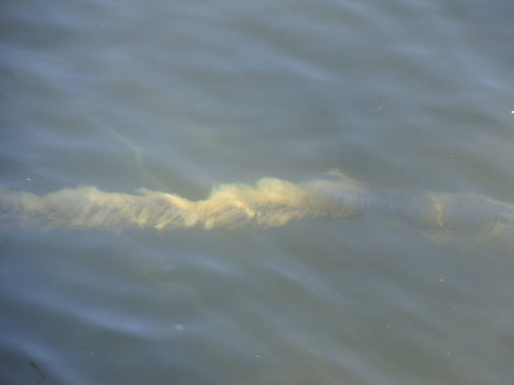 Это Рубежанский КБК сбрасывает неочищенные отходы производства. Мы рыбаки все это называем соплями, вид у них такой, и отвратительный запах.