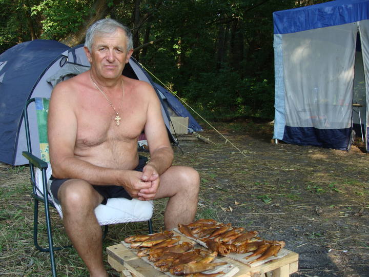 В первый день рыбалки не поймал почти ничего, один случайный лещ на 1кг, три подлещика грамм по 150 и три плотвы. Результат для первого дня вроде плохой но и не совсем. Те люди что были на поляне рядом даже пришли посмотреть потому как ни подлещик и ни лещ не ловится от слова вообще. Пытался ловить строго на том же месте где и в прошлом году. Мешки с песком я всегда вытаскиваю на берег после рыбалки а вот буек в виде бутылки от пива привязанный к кирпичу остался на месте. Померил глубину, та же 4,9м и на глубине 4м я установил якоря. Все точь в точь что и в прошлом году только рыбы не было. Еще два последующих утра я пытался что-то поймать но так поклевок и не увидел.Приходилось после одной рыбалки плавать за окунем чтоб кота любимого покормить и конечно себе немного на коптилку. Одним утром решил пополоскать щучьи приманки. Поймал два щнурка грамм по 700, и был еще парень с Северодонецка который тоже поймал примерно такого же щуренка.